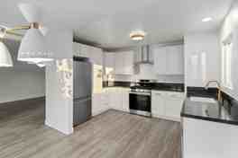 Be the first person to live in this newly remodeled modern-chic, single family home. From the cheery, bright blue front door, the home feels both happy and cool. The kitchen features new, white cabinets and gold accent hardware. The countertops are a dark, moody quartz. The light vinyl floors carry throughout the home including through both bedrooms. Just off the dining area, there is a large, private patio for outdoor entertaining, BBQing and more. The bath features a glamorous porcelain tile in the oversized shower and a warm, wood, mid century modern vanity. Just outside the bathroom is a hookup for laundry. There is also direct access to the garage making this a comfortable home to pull in your garage, drop off your groceries, do you laundry and do some outdoor grilling all within the comfort of your own home. This modern chic home is tucked away at the end of an oversized parcel hidden within West Side Costa Mesa and all of the amenities it has to offer: access to the freeway, Harbor Boulevard, 19th street, Fairview Park, the beach and more
