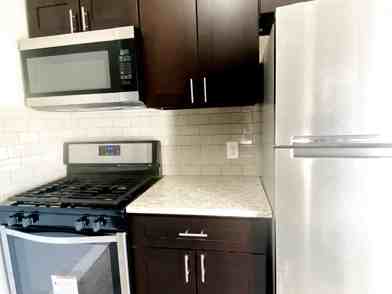 Refrigerator and over the range microwave oven included.