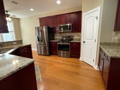 Excellent in Canturbury Farms. Move-in Ready. 4 bedroom with 3 full baths, stone pillar decor on front with arching porch design. Wide foyer with Oak Colonial Wood Flooring. Granite counter tops in kitchen and bathrooms w/ cherry cabinets, Guest bedroom downstairs, Open great room with adjoining breakfast area, separate dining room with chair molding, new carpet and custom paint throughout. Brush bronzed fixtures. Oversized master bedroom with garden tub and separate shower. walk-in closet. Neighborhood amenities include pool, walking trails, street lights and sidewalks. Close to nearby shopping, dining and entertainment.