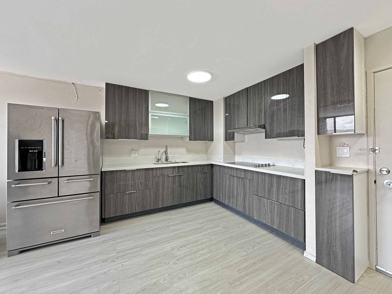 Beautiful and spacious 1 bedroom 1 bath apartment conveniently located in Salt Lake, Honolulu. A minute away from the Airport, Salt Lake shopping center, and easy freeway access. Spectacular golf course and Mountain Views with roof top pool. Renovated in 2022 with beautiful glossy kitchen cabinets, luxury vinyl flooring, tiled walk-in shower, and full size washer and dryer in unit. Furnishings for pictures only, but can be included, if needed.