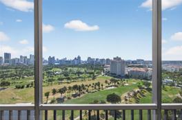 Amazing 2 Bedroom and 2 Bathrooms condo with a panoramic view of the Golf Course, Ocean and Lakes, located along Country Club Drive in the heart of Aventura. This rare to find corner unit is remodeled and features stunning views from every bedroom and living room. Two ensuite bathrooms. Remodeled kitchen with granite counter tops. One cover parking and plenty of guess parking. Brand new impact windows. Porcelain tile floors throughout. Spacious and full of natural light. Plenty of closet space and walk-in closet in the primary bedroom. Rent includes water, internet and cable. Full amenities community with fitness center, sauna, heated pool, jacuzzi, Security 24/7.