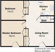 NO Broker Fee and Available NOW. This 2 bedroom, 1 bathroom condo with large open floor plan, quiet and private, located in 22 Kenmar Dr, well-managed, on-site full service condominium community in Billerica, MA. Conveniently near I-495, I-95, I-93 and U.S. Route 3. Ground floor unit and Great for people that want to walk directly into this unit from the parking area. Washer/dryer available in the adjacent building and pool for hot summer days! Each unit is allotted 2 parking spaces. Large living room and two sizable bedrooms with ample closet space. Fully renovated and everything is BRAND NEW. Rent includes heat, hot water, sewer, trash, lawn and snow removal and you pay just electricity and cable/internet. Cats (no more than 2) allowed with $45 monthly pet fee required. One-year standard lease. First, last and security deposit required. Rental insurance required. Showing for qualified candidates (3x income, minimal 600 credit score, no history of eviction and crime) only.