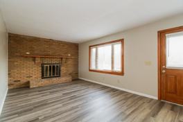 Step inside to find durable LVP flooring flowing throughout the main level, complemented by large windows that bring in natural light across multiple living areas. The layout offers flexibility with a spacious main living area anchored by a brick accent wall, while an additional sitting space nearby creates options for a home office, reading nook, or media setup. Just beyond, the dining area sits comfortably between living spaces and the kitchen, making everyday routines feel connected and easy.