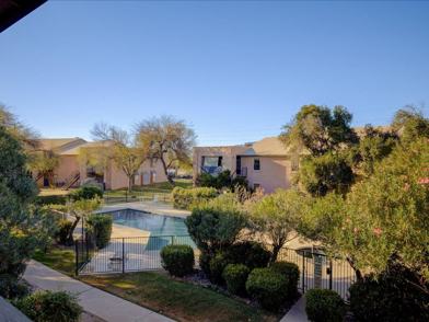 This inviting two-bedroom, two-bathroom upstairs home offers both comfort and security with a gated entrance and a private fenced walkway leading to the front door! Inside, you'll find a functional layout with a spacious master bedroom featuring a walk-in closet for ample storage. The kitchen includes all appliances and a convenient pantry, making meal prep and organization easy. For added convenience, a washer and dryer are included. Residents can also enjoy access to the community pool and relaxing hot tub, perfect for unwinding and enjoying sunny days. This home combines privacy, convenience, and great community amenities in one desirable space!