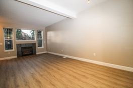 * The living room features newer laminate flooring and a cozy gas fireplace.