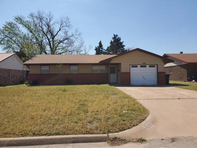 3 bedroom, 1 bathroom, storm shelter, covered patio, 1 car attached garage, dishwasher, some carpet, pets with approval and $300 pet fee (per pet).