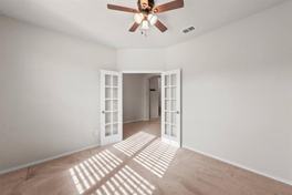 Beautiful 3 Bedroom 2 Bath home with a study that is secure with French doors. As you enter this home you will locate a study along with a bedroom towards the front. Going through a wide-open entry you will find a very open kitchen, dining, and living area that allows all the family to gather. The kitchen has all white built in cabinets, up to date electric appliances, and granite counter tops. You will also find a large island in the kitchen that opens to a fully carpeted family room. The home has a nice, covered patio that is completely fenced in for privacy.
