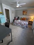 The house features in-unit washer and dryer. Inside the room, guests will find a queen bed, attached private bathroom with a shower, private closet, fast Wifi, smart TV, work station, fan, and mini fridge.
