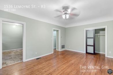 Enter through the hallway of the home and immediately notice the built-in storage chest and two huge storage closets for all your extra decorations and clothes! You can't miss the vintage purple-tiled bathroom featuring a separate shower and tub on your way to the bedroom! The bedroom has newly polished wood floors, another set of two closets, and two large windows to let in every twinkle of light.
