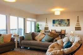 What better way to wake up, than to a gorgeous, wide-angle view of the sunrise over the Bayfront? And what better way to fall asleep, than to the sound of waves rolling in? Top floor, corner unit overlooks the Corpus Christi Bay, in every direction, from every window... And each bedroom has access to its own large balcony-- one along each side of the condo. Fully furnished inside and out; with queen size bed sets in each room. Pictures hardly do justice! Expansive granite counters in fully equipped kitchen, and ample storage. Full size washer & dryer in laundry closet. All bills included, except tenant to pay electric. Call agent and schedule your showing.. ready for immediate move-in