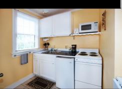 Furnished with queen bed, dresser, flat screen, recliners, rugs, 2 top dining set, microwave, stove, frig.