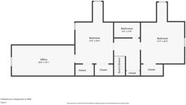 The primary suite offers comfortable privacy with an en-suite bath featuring dual pedestal sinks and a tiled shower. Additional bedrooms provide ample flexibility for various needs, complemented by a bright full bath. Each room is enhanced by neutral tones and generous natural light.