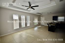 Welcome to 110 Teak, a modern and stylish 3-bedroom, 2-bathroom apartment located in Edinburg, TX. This condo-quality unit features stainless steel appliances, granite countertops, and modern fixtures throughout. With a spacious open floor plan, vaulted ceilings, and tile floors, this apartment offers a comfortable and contemporary living space. Enjoy the convenience of a washer and dryer included, as well as covered parking and 24/7 maintenance support. The property is pet-friendly with breed restrictions and is gated for added security. Central AC ensures your comfort year-round, while lawn care is included for your convenience. With a 12-month lease and tenant responsible for all utilities, this apartment is the perfect place to call home. Don't miss out on this opportunity to live in a stylish and pet-friendly community in Edinburg.