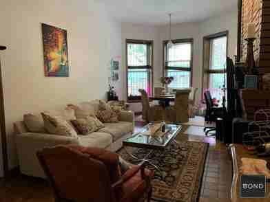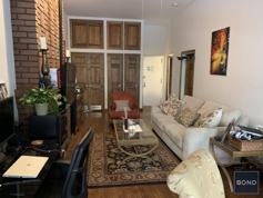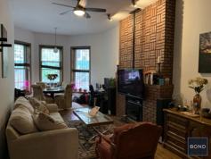 Recently renovated, absolutely charming 1BR apartment with a bay window, 13' ceilings, a working fireplace, room for a dining area, hardwood floors, a wall of closets with overhead storage, separate granite and s-steel kitchen, in-unit washer/dryer and the bedroom fits a queen size bed and has a great closet with overhead storage. All in a lovely brownstone off Riverside Park on a quiet, tree lined block!