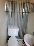 The property that is rented stops at the "Rock Creek" and is the main house and the large shed behind it. There's a nice front porch and deck in the back and a large back yard.