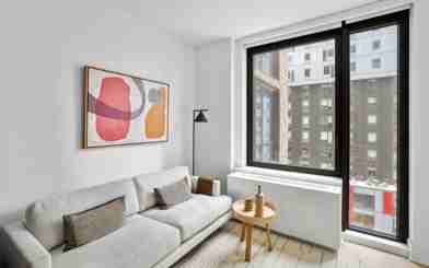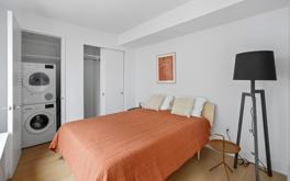 Spacious JR 1 bedroom home with floor-to-ceiling windows spanning the living room and bedroom. This layout also includes an in-home washer/dryer.