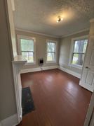 Single level home with stair access from street featuring 2 bedrooms, 1 bathroom, kitchen with electric range, fridge, and laundry connections, dining room, living room, sunroom, hardwood floors, window AC and gas wall heat. Street parking only. Owner Must Approve All Pets.