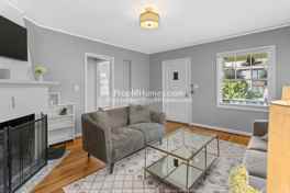 -Spacious living area with hardwood flooring, tall windows, and abundant natural light