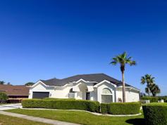 Through the entry you find yourself in an open foyer with arched and vaulted ceilings leading to the kitchen and dining room. Vinyl floor planking throughout the main areas of this home. The kitchen is with modern white cabinetry, QUARTZ countertops and backsplash with bar height counter for casual dining. Adjacent formal dining area which accommodate a gathering comfortably leading to the making of many great memories. Master bedroom is oversized and features two large walk in closets, quartz sinks and tub and remodeled private walk in shower. The other two bedrooms are very spacious and share a bathroom which has a tub and shower with access to the pool area. The second living room is equipped with built in bookcases and media center and built in secretary’s desk. The windows are lit by natural light which welcomes you to the indoor/ outdoor patio, pool and screen enclosure to enjoy the privacy of the home with no neighbors in sight. The yard is surrounded on all sides by a fence. Pristine Place offers amenities, including a clubhouse, fitness center, playground, and more. This quiet community is less than 2 miles away from the Suncoast Pkwy for easy access to Tampa. It’s also close to schools, shopping, dining, and hospitals.