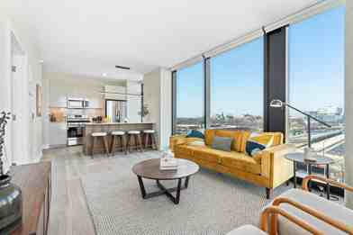 Loads of amenities and on-site services add plenty comforts and convenience, including a fitness center, co-working spaces, creative makers studio, a study lounge, and two outdoor sun decks with stunning skyline views.