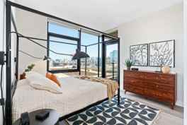 These smartly designed modern apartments feature luxury finishes including double pane floor-to-ceiling windows, 9’-12’ tall ceilings, modern kitchens and bathrooms, five-burner gas range, dishwasher, spacious custom-built closets, wide plank wood flooring, and washers and dryers. Some units include private balconies.