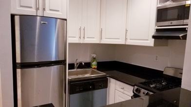 Modern kitchen with dishwasher and microwave, pristine marble baths. Closet space galore!