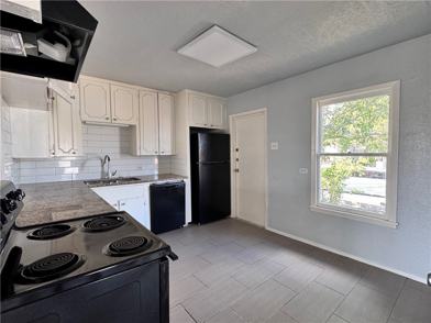 Upstairs two-bedroom one bath with central A/C plus carport with water bill paid. Luxury vinyl plank and ceiling fans throughout. No carpet. Kitchen boasts granite countertops, is equipped with refrigerator, stove, dishwasher, vent hood, double basin sink, great countertop space, eat in breakfast bar that overlooks the living room, and back door access. Spacious bedrooms with windows that allow for plenty of natural light to fill the rooms. Bathroom with tub shower combination and cabinet storage.