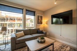 Fully Furnished modern tones throughout, from the open concept floor-plan to the sleek kitchen with stainless steel appliances. The included furniture and decor are expertly selected and placed for this individual layout, and the mounted Samsung Smart TVs are ready for your enjoyment. Finally, your home is filled with convenient amenities, from the luxurious bedding to the completely stocked kitchen. Find more such homes at housestay dot com