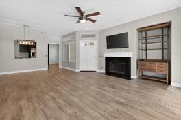 This beautiful single-level home is located within the highly desirable 55+ gated community of Palmia. Light and bright, this corner end-unit offers a prime location and has been tastefully upgraded throughout. The home features updated flooring and baseboards, recessed lighting, and a stylish updated fireplace that adds warmth and charm to the living space.