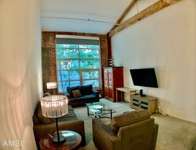 This Furnished 1BR/1BA live/work unit provides spacious living in an elegant styled loft, complete with a historic brick-faced wall, wood beams and very high ceilings. Windows on both sides of the loft provide excellent cross-ventilation. The property features an office workspace in the entry foyer, a great space to work from home! Washer and dryer in the unit. Luxer One package lockers on site.