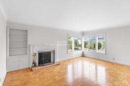- Huge living room with decorative fireplace and built in bookcase