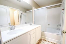 Upgraded condo in Northwest gated community. Open floor plan, shutters throughout, tile flooring downstairs and wood flooring on stairs. Kitchen features upgraded 42" upper cabinets, solid surface countertops, breakfast bar and dining area. Separate laundry area includes washer and dryer. Bedrooms are upstairs. Primary bedroom features ceiling fan and walk in closet. Mirrored wardrobe doors in secondary bedrooms. Patio area with artificial turf. 2-car garage. Community pool.