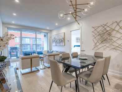 *OCCUPATION POSSIBLE ENTRE LE 1ER MAI 2022 ET LE 1ER JUILLET 2022 (flexible)* Nouvelle construction haut de gamme! Les condos « Signature Bates » : construction 2018/2019 à Ville Mont-Royal, avec piscine sur le toit et terrasse commune. Ce condo a 2 chambre à coucher ainsi que 2 salles de bain. Espace ouvert entre la cuisine, coin repas et salon. Cuisine blanche suivant les tendances d'aujourd'hui, avec comptoir de quartz au look de « marbre ». La chambre à coucher principale a un garde-robe walkin et salle de bain ensuite. Accès au balcon par le salon -- belle vue du 5e étage! Le loyer inclut un locker, un stationnement dans le garage et les électros. Climatisation centrale. Emplacement très central avec toutes commodités à proximité : nouveau Campus de l'Université de Montréal, parcs, parc à chiens, écoles de renom (dont l'école primaire St-Clement), garderies, épiceries fines, boulangeries, ainsi que commerces et services de quartier. Possibilité de faire ses courses à pieds à l'épicerie Métro Mont-Royal. Stations de métro Acadie et Outremont (ligne bleue) à moins de 15 minutes de marche. Les photos ont été prises dans l'unité 409 qui est identique afin de vous donner une idée de la dimension des pièces avec des meubles. --- *FLEXIBLE OCCUPATION DATE BETWEEN MAY 1ST, 2022 TO JULY 1ST, 2022* New high-end construction! "Signature Bates" condos: 2018/2019 construction in Town of Mount-Royal, with a rooftop pool and common terrace. This condo has 2 bedrooms as well as 2 bathrooms. Open space between kitchen, dining area, and living room. White kitchen following today's latest trend with quartz "marble" counter. The master bedroom has a walk-in closet and ensuite bathroom. Access to balcony through the living room -- nice view from the 5th floor! The rent includes one locker, one parking spot in the garage and all appliances. Central A/C. Central location for your convenience. All commodities are walking distance: new University of Montreal Campus, parks, dog park, reputable schools (such as St-Clement primary school), daycares, grocery stores, pastry shops, pharmacy, etc. You can do all your grocery shopping by foot at Métro Mont-Royal. Acadie & Outremont metro stations (blue line) are less than a 15 minute walk away. The pictures were taken in unit 409 (which is identical) to give you a better idea of the size of the rooms when the condo is furnished.