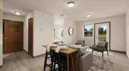 Find yourself at home next to Burlington Crossings just north of the Skagit River. This is the land of tulips, stunning views, canoes, and mountain day hikes…just on a whim. Commuters are close to I-5 and just a short walk to public transportation for travel to Seattle, Bellevue, or Bellingham. Highway 20 feeds the real passions of northwest enthusiasts. This two-lane arterial connects to the San Juan Islands and Deception Pass to the west, or to Mount Baker and the blue-green glacial waters of Lake Diablo and Ross Lake to the east. Meanwhile, our beautiful homes are spacious, and include open floorplans, modern finishes and appliances, gigabit internet, and washers and dryers in every residence…with off-street parking. The lobby is welcoming for your guests and parking is available for them as well. The entire building is pet-friendly, there’s a playground and much more to see. Stop by, or make an appointment, to tour today.