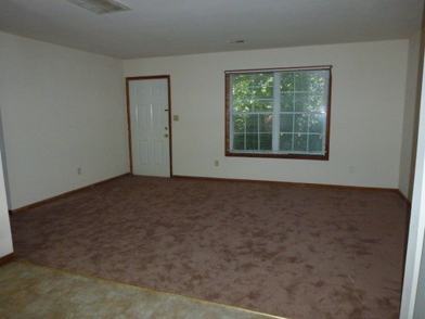 Downstairs unit, living room, kitchen, electric stove, refrigerator, w/w carpet, electric heat, & central a/c & driveway.