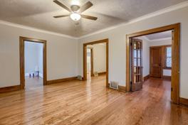 Hardwood floors throughout, an enclosed front porch, french doors, tall ceilings, and an updated bathroom! Detached garage with a large driveway. Plenty of usable storage space in the unfinished basement!