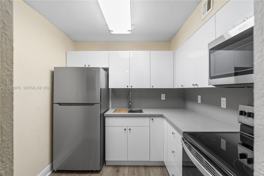 This spacious corner unit at Sunset Palms East was completely modernized and renovated in May of 2024. Generous renovations include a NEW KITCHEN, NEW BATHROOM, and NEW FLOORS. Located on the 3rd floor with 1 Bedroom and 1 Bath, the condo also has a balcony. The unit has a large living/dining room with hurricane-impact sliding doors and windows. This unit also comes with a dedicated parking space. The Sunset Palms community offers tennis courts, a pool, a picnic area, and guest parking. The unit does not include a washer and dryer as per association rules. It is centrally located and close to the Palmetto Highway, shopping centers, and Sunset Park. First Month and security Deposit. Don't T MISS THIS OPPORTUNITY!