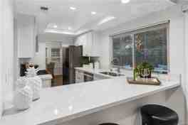Beautiful 4-bedroom home in the heart of the Northwood Community in Irvine. Proudly situated on a quiet street with large mature trees and back to the serene Venta Spur walking trail with no neighbor behind. Double entry leads to formal living/ dining area with a remodeled, built-in wet bar. Newer laminate flooring in main living area, tile in wet areas and carpet on stairs and in all bedrooms upstairs. The modern kitchen has been remodeled from top to bottom with shaker style cabinets, quartz countertop, recess lighting, all stainless LG appliances with gas cooktop and refrigerator. Cozy fireplace in the family room with direct access to the resort-like large backyard. Well maintained landscape with low maintenance plants and mulch. Perfect oasis to enjoy the California sun. Large master bedroom with vaulted ceiling, recess lighting and a private & peaceful tree-lined view. All bathrooms have been renovated. Entire house has dual-pane windows and laminated wood flooring throughout, newer HVAC system. Close to community parks, schools, shopping, restaurants and easy access to freeway. Award winning Brywood Elementary School, Sierra Vista Middle School and Northwood High School. Make your appointment to see the house today!