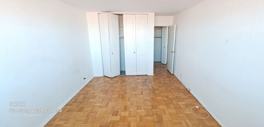 Renovation underway for this lovely high ceiling 1 bedroom apartment. Sunny window lined apartment. Wood parquet floors. Entry way double door accordion closets are high and wide. Corridor lined with 2 wall lined closets leads to tiled full bathroom