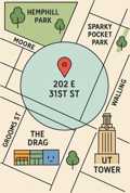 202 E 31st St, Austin, TX is a 1 bedroom, 1 bathroom apartment for rent. It is located in the North University neighborhood of Austin. It has apartment amenities including dishwasher, hardwood floor, and in-unit laundry. Cats and dogs are allowed, making it a pet-friendly apartment.
