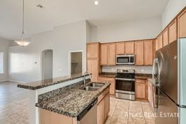 This amazing single story 4 bed 2 bath home in Tolleson features a wonderful floorplan with formal living and family rooms, split bedrooms, and a kitchen with extended height upper cabinets, granite counters, an island and all stainless steel appliances. Vaulted ceilings in the living areas and primary bedroom. A 3 car tandem garage, a spacious covered patio and a maintenance-free hardscaped backyard makes this the perfect house to call home.
