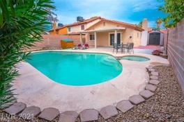 Beautiful fully furnished house with sparkling pool and spa for rent! Cozy 3 bed 2 bath house with 1 car garage. Kitchen is new with modern white cabinets, quartz countertops and stainless steel appliances! Backyard features a pool + spa with newer gas heater, as well as covered patio. All furniture and appliances are included! Tenant pays utilities and pool maintenance. Short term rentals will be considered but we prefer 6 months or longer. The home also has solar panels for lower power bills! Convenient NO HOA location in Green Valley Henderson - close to shopping, restaurants, and highway. Come see it today!