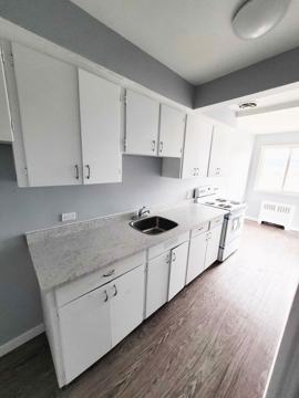 This renovated studio apartment is located at 15-1617 Queensway and is available now. New flooring and paint throughout, and updated 4-piece bathroom. The building has a secure entry and laundry facilities on-site. Rent is $850.00 per month, including heat, plus hydro. Located between Connaught Hill Park and Lheidli T'enneh Memorial Park and close to Parkwood Shopping Center, the movie theatre, bus routes, the hospital and downtown Prince George. Smoking and disruptive behavior are not permitted. Pets are negotiable but require an additional deposit.