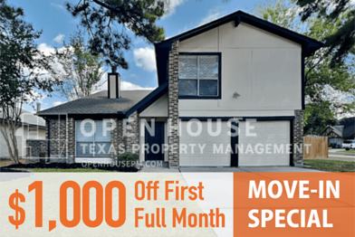 Charming 3 bed, 2.5 bath, 2,306 sq ft home in Spring! Open kitchen concept with updated counters. Primary suite with attached bathroom. Spacious backyard, great for gatherings! Pets accepted on a case by case basis. The Fireplace is decorative. Schedule your showing today! This home is as-is.