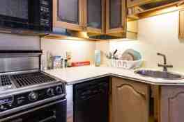 unit has red brick walls, in suite laundry, Dishwasher, solid oak floors.