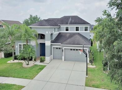 WATERFRONT, Executive Home, Exceptionally maintained and conveniently located. Double entry doors, wood look tile, lots of tray ceilings and detail with arches, niches, recessed lighting, ceiling fans, built-ins are just some of the detail throughout. The oversized kitchen boasts plenty of cabinets (42"), stainless steel appliances, cooking island, granite, walk-in pantry and kitchen nook. Formal living and dining rooms, Water views from the kitchen, family room and primary bedroom. Sliding glass doors open to the fully enclosed lanai. The first floor primary suite is spacious and features a whirlpool tub and separate shower, large, walk-in closet, dual sinks and counter space. Secondary bedrooms and loft are upstairs. Additional bathroom off the family room and 1/2 bath located near the entry. The backyard is very peaceful and serene overlooking the water. Lawn care included.