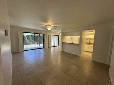 You have arrived to Rancho La Paz, true resort living in the highly sought-after Deepwell neighborhood. One of South Palm Springs' most desirable and centrally located communities. Ideally positioned close to Smoketree Shopping Center and just minutes from downtown Palm Springs (approx. 5 minute drive), this residence offers effortless access to the city's best dining, shopping, art galleries, and nightlife. This thoughtfully designed ground floor units unique floor plan features two spacious ensuite bedrooms with additional dressing areas, positioned on opposite ends giving each privacy, ideal for guests, roommates, or a second-home retreat. Theo kitchen has granite countertops, deep sink, newer fixtures and opening seamlessly into the Great Room. creating an open, airy ambiance that embodies the Palm Springs lifestyle. The home has been recently painted throughout, tile flooring throughout main living space and newer carpet in the bedrooms. Step outside to your expansive private patio spanning the full width of the home, accessible from both the living room and primary suite. Enjoy peaceful pool just steps away and mountain views and indoor-outdoor living year-round. Within the community, residents enjoy resort-style amenities including: 3 Pools & Spas, Tennis & Pickleball Courts, Dog Park, Beautifully landscaped, well-maintained grounds, Dedicated covered parking, Unmatched Location & Lifestyle: Walking distance to Koffi, Elmer's, and Smoketree Shopping Center, 5 minutes to Downtown Palm Springs, Close to multiple hiking trails including Indian Canyons & Tahquitz Canyon, Near Palm Springs Art Museum and cultural attractions and Palm Springs International Airport. HOA allows short term rentals 30 days and longer. Whether you're seeking a full-time residence, weekend getaway, or investment property, this home delivers the perfect blend of privacy, convenience, and classic Palm Springs living.