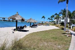 Exceptional tropical setting/views out to the waterfront featuring white sand beach area, boardwalk, deck, heated pool and spa! You will love the beautiful coastal feel decor/furnishings and gorgeous kitchen with wood cabinetry, granite, and black/stainless appliances. Extra area off kitchen great for breakfast nook or office space. Full size washer-dryer in utility room in the unit. Split bedroom plan. Primary bedroom with views of waterfront featuring king size furniture. En suite bath with double sink vanity and garden tub/shower combo. Bedroom #2 has twin beds. Hall bath has step-in shower. Lovely tile throughout all living/kitchen/hallway/baths, and carpet in both bedrooms. Outdoor covered patio with stunning tropical views! Rent includes water/sewer/garbage, ext. cable, Internet & WiFi services. Tenant pays electric. NO PETS at Bahia Vista II. Outdoor assigned parking (one space) plus guest spaces. AVAILABLE MAY 1, 2026 FOR SIX MONTHS ONLY.