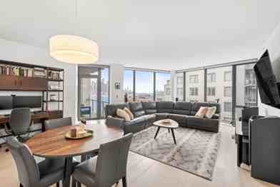 Introducing an exquisite home featuring unique floor-to-ceiling glass windows, offering stunning protected panoramic East/SouthEast views of the Epic Manhattan Skyline and Hudson River! Enjoy a peaceful morning sunrise or sunset golden hour on your spacious balcony overlooking the NYC Skyline! This stunning residence boasts a high-end kitchen equipped with custom Italian Pedini cabinetry, generous Aspen quartz stone countertops with a waterfall edge, and a Bosch appliance package, including a Thermador built-in refrigerator, ideal for cooking enthusiasts. Pamper yourself in two luxurious bathrooms with Carrara marble floors and walls, custom Italian Pedini vanities topped with quartz countertops, and Moen faucets complemented by luxurious rain shower heads. The spacious bedrooms offer ample closet space, and the entire home is adorned with beautiful light oak flooring throughout. Modern Restoration Hardware lighting fixtures and the convenience of in-unit laundry complete the package. Residents enjoy exceptional 40,000 SF of resort-style amenities, including a 24/7 concierge, multiple resident lounges, an infinity pool, a 6,000 sq. ft. fitness center with a yoga studio, aerobic studio, and weight room, two saunas, a thoughtfully designed play area for children, two landscaped community decks with fire pits and BBQs all overlooking The Greatest City in The World. One Parking Space included.