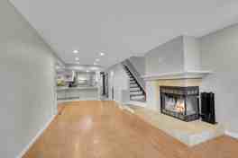 Welcome to this beautiful townhome! As you enter, you’ll be greeted by an open living room with large windows and a cozy fireplace. Just beyond is the dining area, featuring elegant floor-to-ceiling mirrors that lead into the kitchen. The kitchen is fully equipped with a refrigerator, microwave, oven, electric stove, and dishwasher. In this area, you’ll also find a washer and dryer tucked neatly behind charming barn doors, along with a convenient half bath.